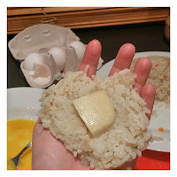 chiudete la mano e appallottolate bene il riso, prestando attenzione al pezzo di formaggio e pressando il più possibile.